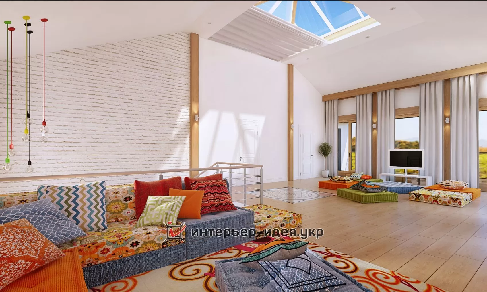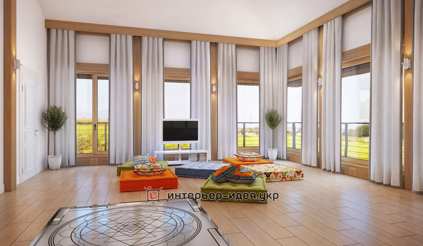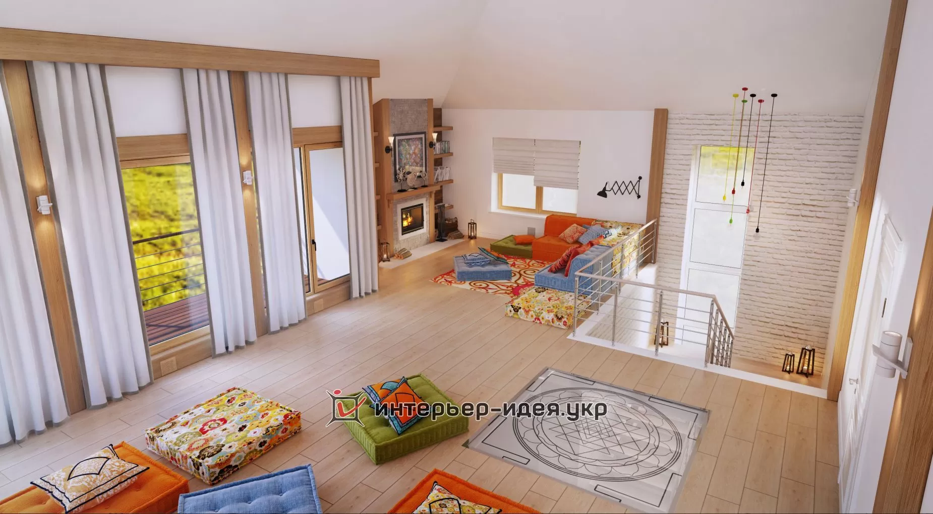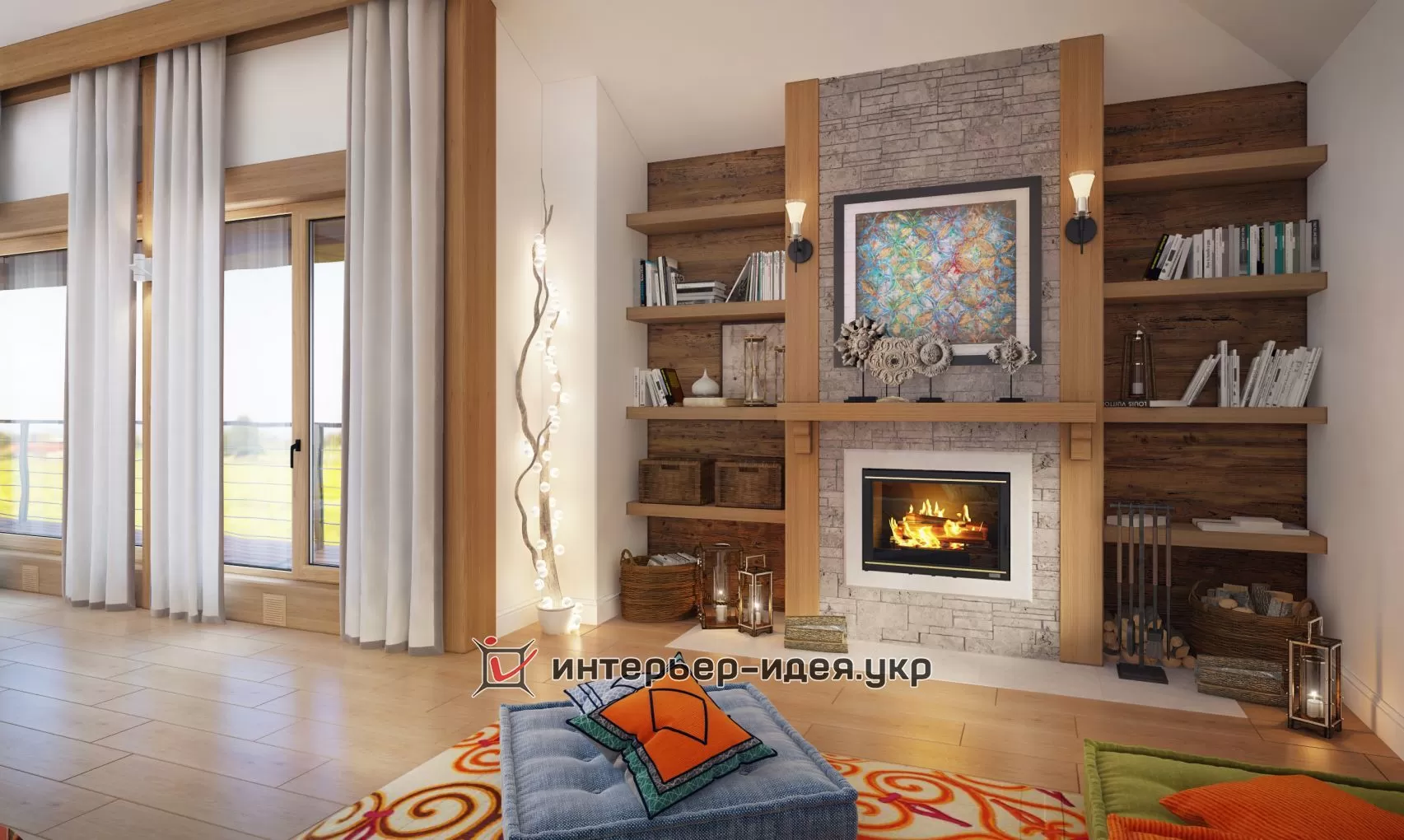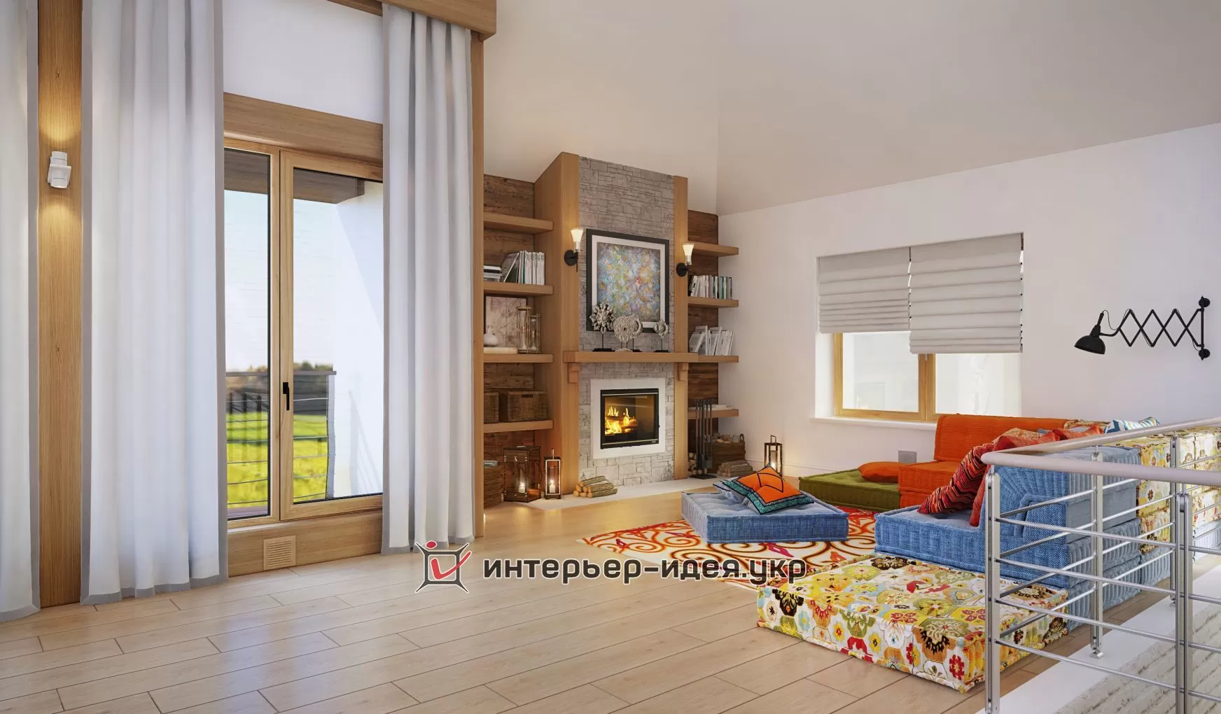 Дизайн гостинной с камином на втором этаже в восточном стиле, г. Черкассы