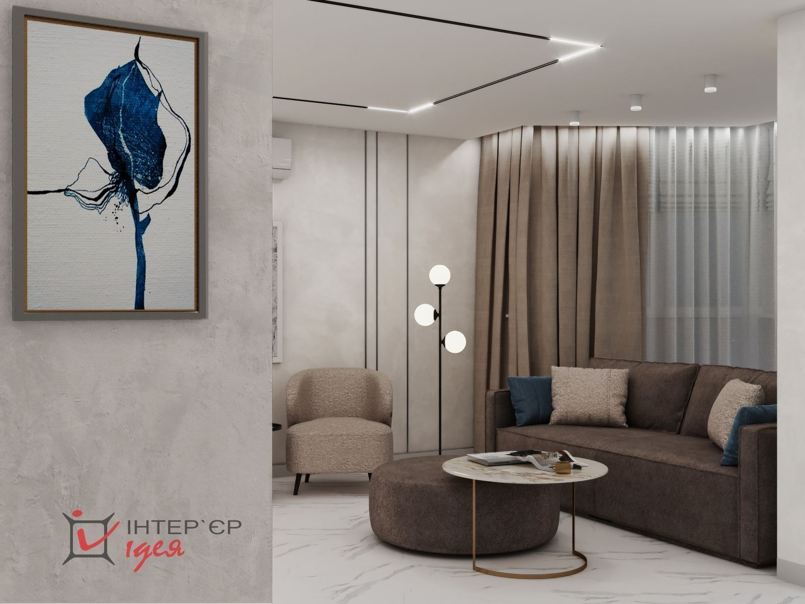 При планировании размещения электровыводов, учитывая большую площадь остекления, предусмотрена автоматизация свертывания и развертывания рулонных штор.