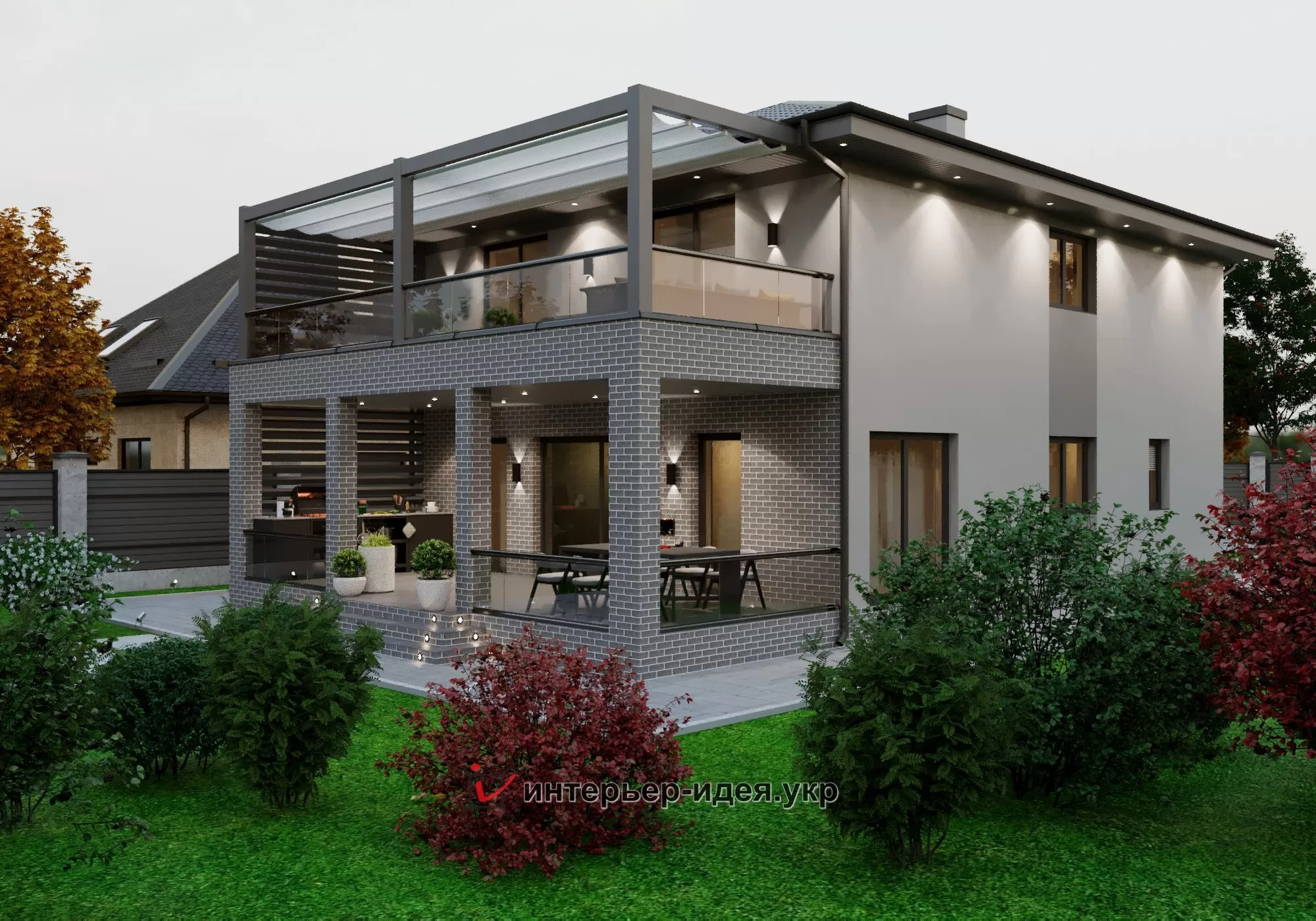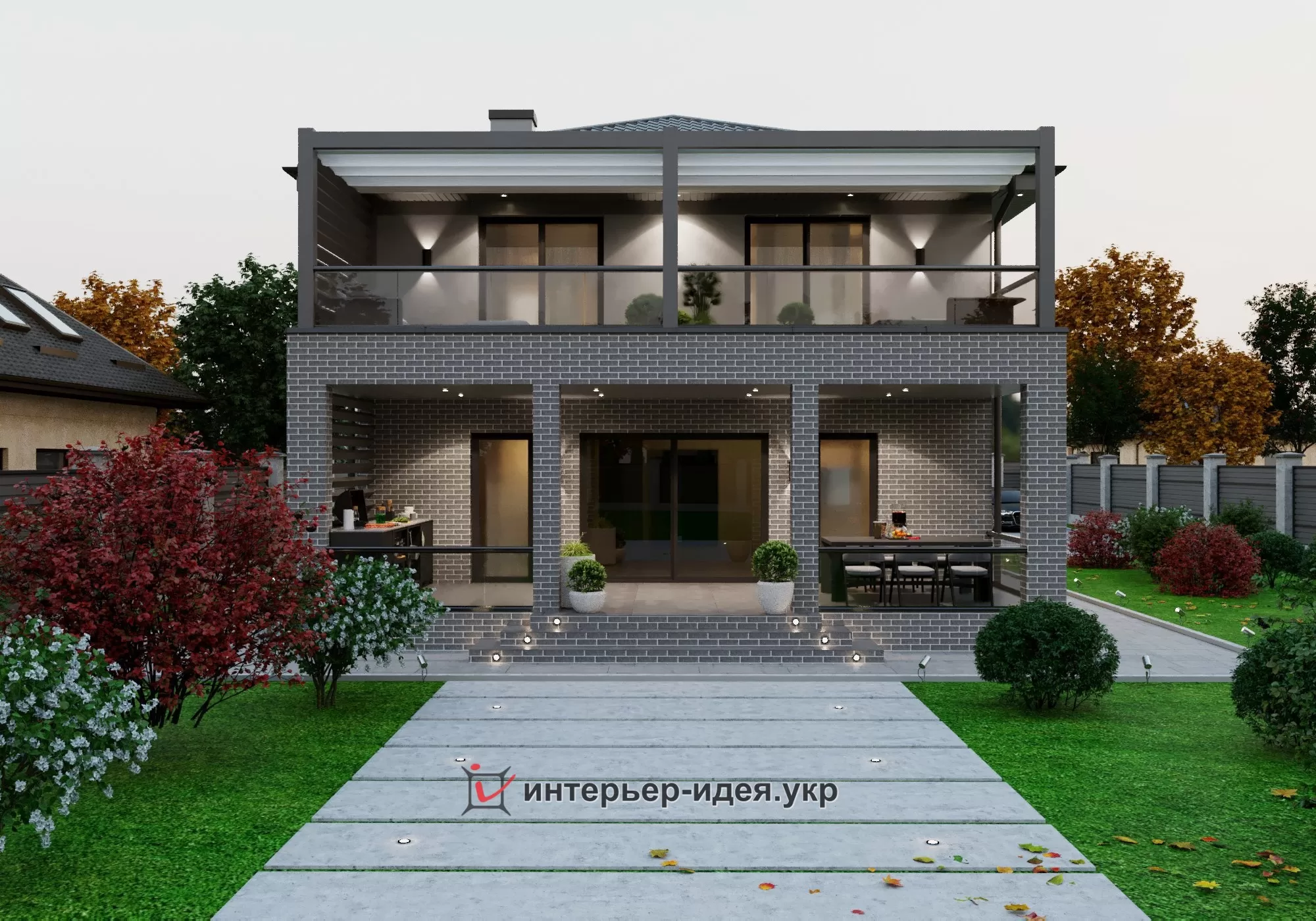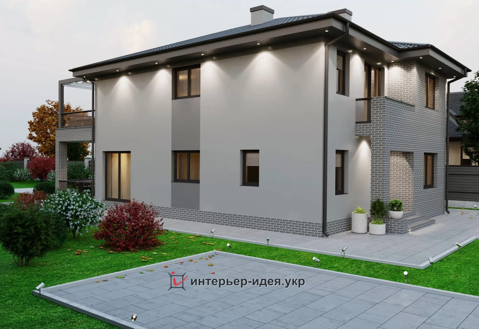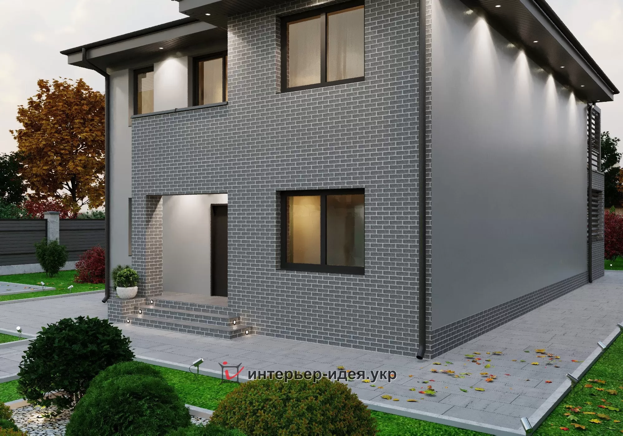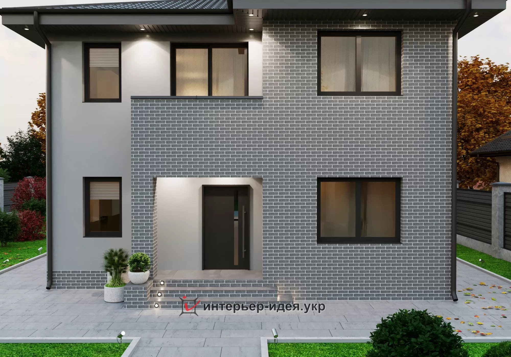 В отделке использовались два материла - фасадная плитка под кирпич и покраска в 2 цвета.