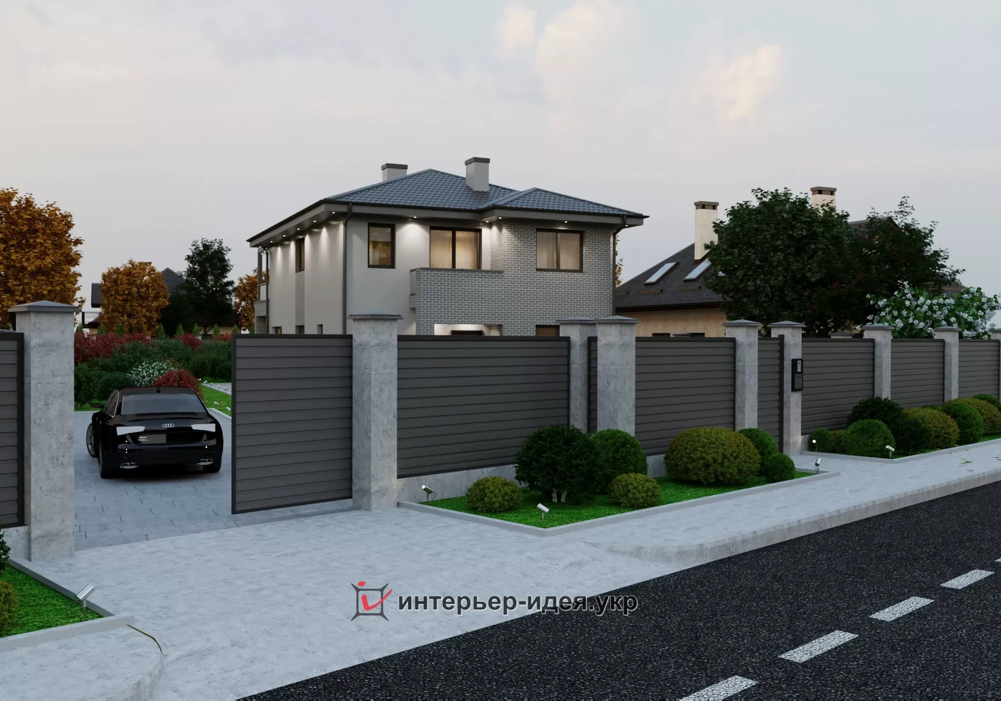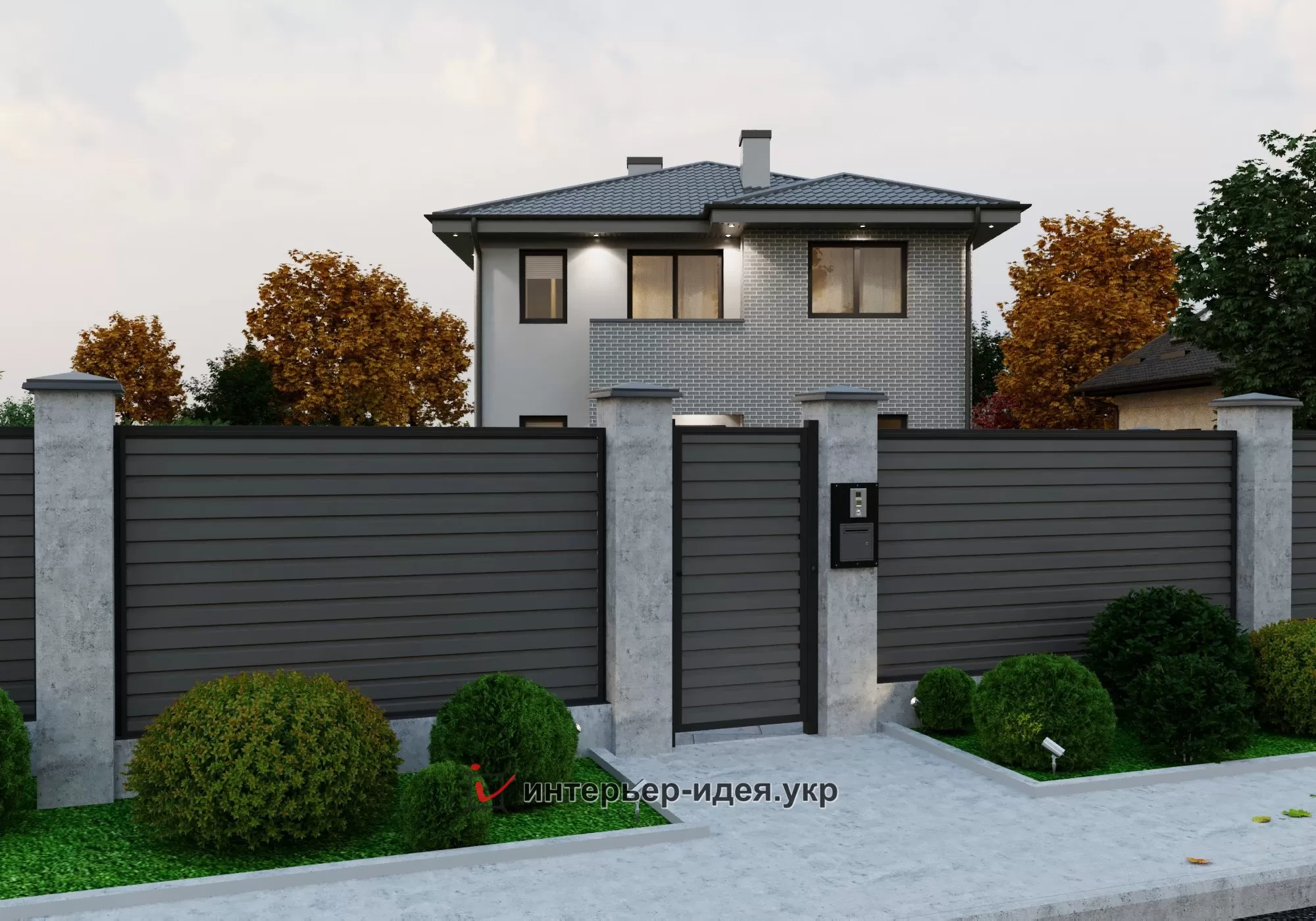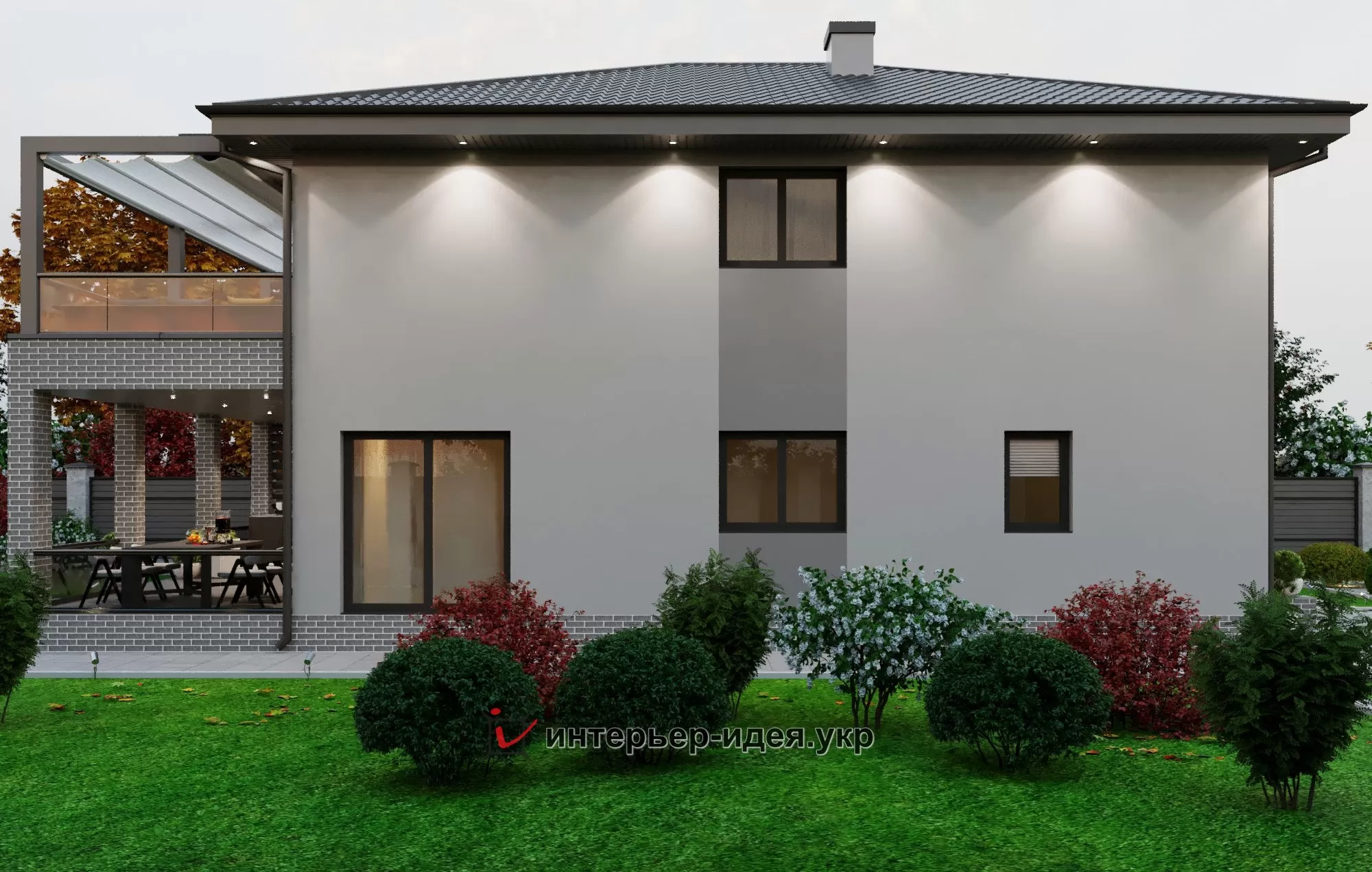 Остальные стены - покраска. Более темным цветом выделаем окна на боковом фасаде, визуально объединяя их и вытягивая фасад. Так же темная полоса проходит по периметру всего дома под крышей, перекликаясь с цоколем.